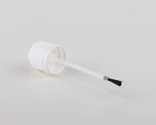 Nakrętka do buteleczki 10 ml zakończona pędzelkiem ułatwiającym aplikację cieczy do badania.