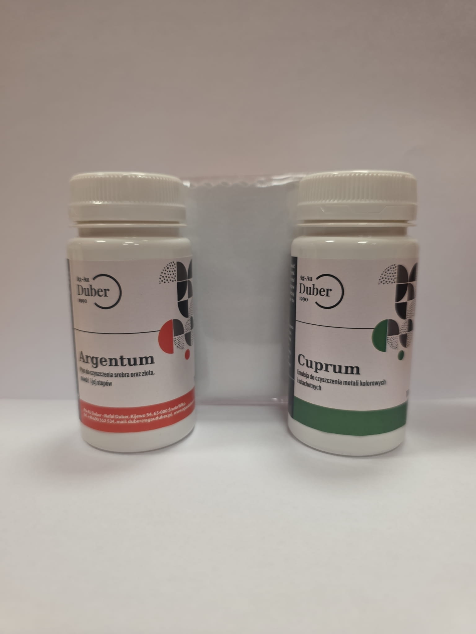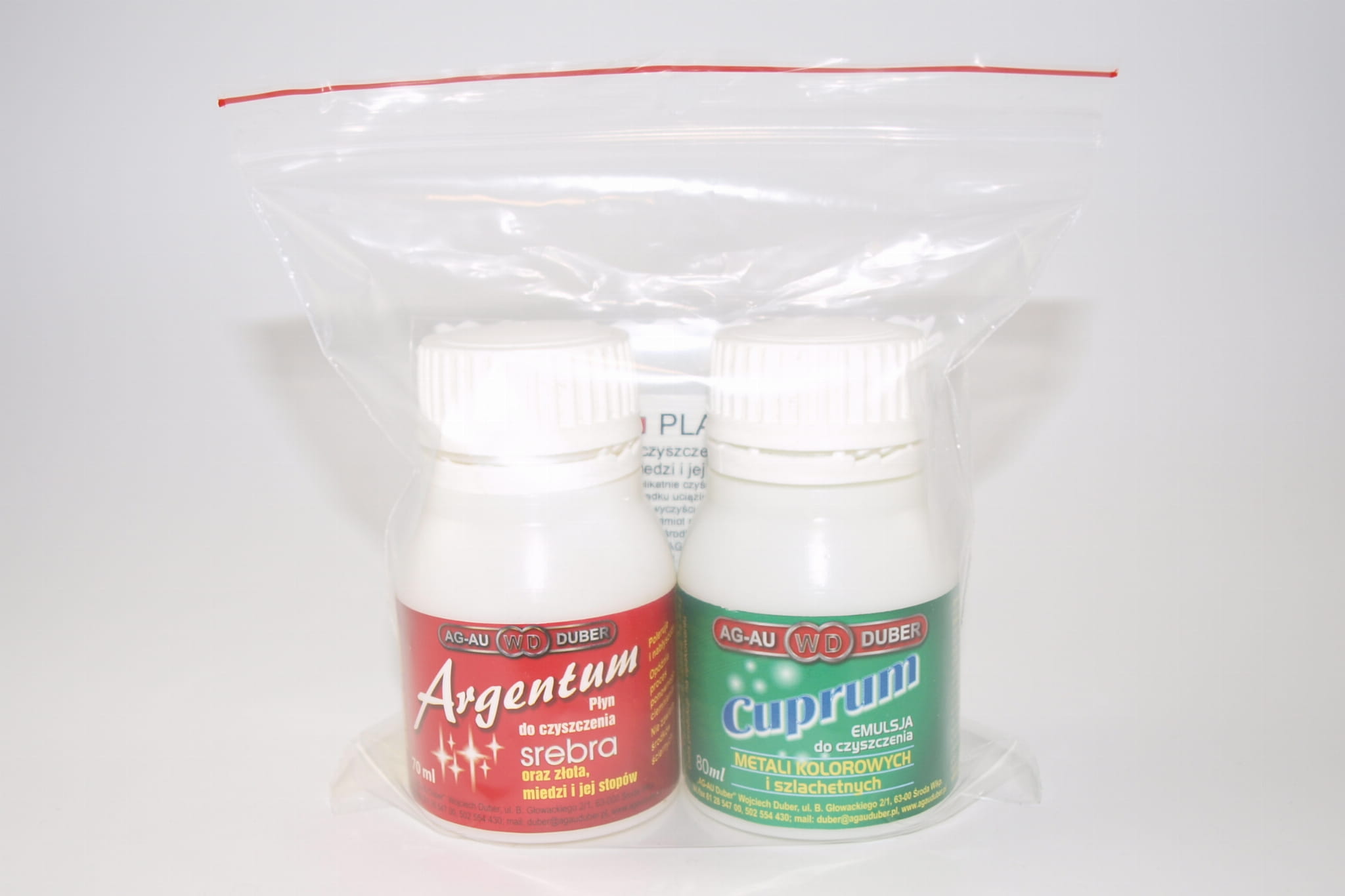 - Nie czyścić razem biżuterii złotej i srebrnej. Daną porcję płynu Argentum stosować tylko do jednego metalu (złoto, srebro, miedź, mosiądz).